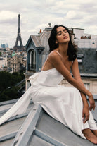 Kailey Low Back Maxi Dress With Detachable Bow Train - White