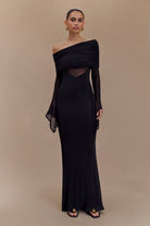 Kaitlin One Shoulder Slinky And Mesh Maxi Dress - Black