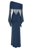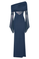 Kaitlin One Shoulder Slinky And Mesh Maxi Dress - Midnight Blue