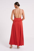 Kamala Low Back Satin Maxi Dress - Red