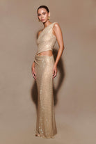 Kenny Diamante One Shoulder Maxi Dress - Gold