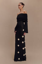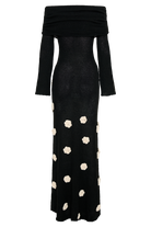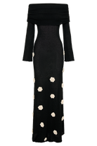 Kiki Off Shoulder Knit Rose Maxi Dress - Black/White