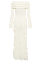 Kiki Off Shoulder Knit Rose Maxi Dress - Ivory