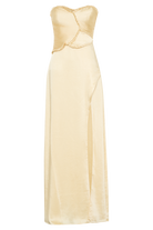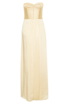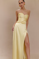 Larissa Satin Maxi Dress With Ruched Petals - Lemon