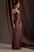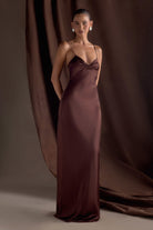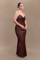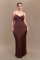 Lilly Sweetheart Satin Maxi Dress - Dark Chocolate