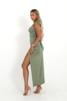 Effortlessly Chic in the Liraea Khaki Back-Knot Slit Dress