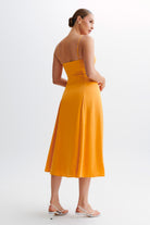 Introducing the LUCIANA Satin Midi Dress, a vision of elegance and sophistication. With its princess neckline, this dress exudes timeless charm and flatters the décolletage beautifully. Featuring a centre front tie keyhole, it adds a touch of allure and versatility to the design. The princess seams enhance the silhouette with a tailored fit, while skirt godets add movement and drama to your every step. Designed with adjustable straps for a customisable fit and lined for comfort, this midi-length dress is perfect for any special occasion. Whether you're attending a wedding or a formal event, the Luciana Midi Dress promises to make a statement with its undeniable allure and refined style.