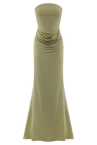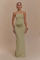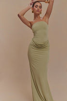 Madison Strapless Slinky Maxi Dress - Sage
