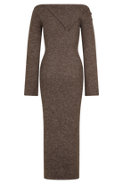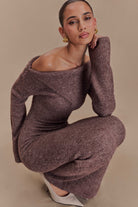 Magenta One Shoulder Fluffy Knit Midi Dress - Pecan