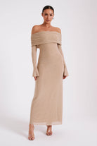 Marcel Off Shoulder Diamante Maxi Dress - Nude