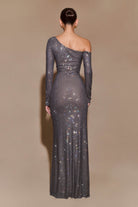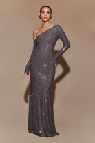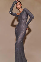 Marcia Diamante Long Sleeve Maxi Dress - Gunmetal