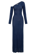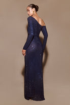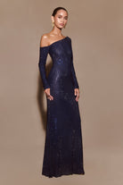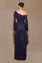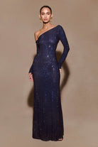 Marcia Diamante Long Sleeve Maxi Dress - Navy