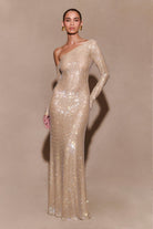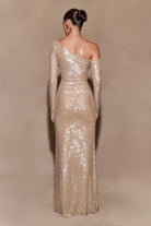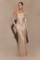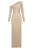 Marcia Diamante Long Sleeve Maxi Dress - Nude