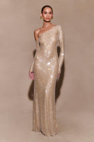 The MARCIA Diamante Long Sleeve Maxi Dress is a striking blend of glamour and elegance. Designed with an asymmetrical neckline and long sleeve, this bodycon dress hugs your curves to perfection. The intricate diamante mesh fabrication glistens with every move, offering a dazzling touch to this timeless piece. Crafted from a stretch fabric and mesh-lined for comfort, the dress moves with you, ensuring both style and ease. The maxi length adds an air of sophistication, making it the ideal choice for evening events, parties, or any occasion where you want to shine with confidence.