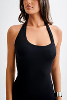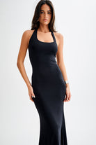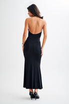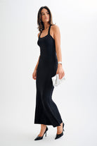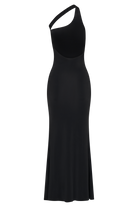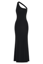 Marianne Asymmetrical Slinky Maxi Dress - Black