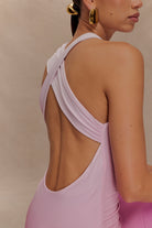 Turn heads in the MARLEE Asymmetrical Slinky Maxi Dress, designed to flatter with fluid lines and bold detail. Featuring an asymmetrical twisted neckline and cross-over back straps, this silhouette is elevated by a softly draped cowl back for added allure. The body-hugging fit flows into a dramatic fishtail hem, creating elegant movement with every step. Fully lined for a smooth, sculpted finish, this dress is your ultimate evening statement.