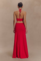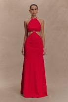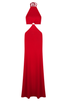 The MARLOWE Halter Knit Maxi Dress is a statement in effortless sensuality. Featuring an adjustable halter neckline and a striking open back, this dress is designed to turn heads with a front hardware detail and side-to-back waist cutout that flatters and defines. The A-line skirt adds balance to the bold silhouette, while the unlined knit keeps it lightweight and breathable. Perfect for warm evenings, holiday getaways, or anytime you want your outfit to do the talking.