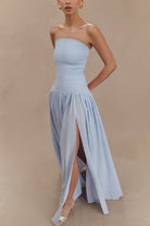The MAUREEN Cotton Shirring Maxi Dress is the epitome of effortless elegance. This strapless dress features a shirred bodice that provides a comfortable and flattering fit, while the longline bodice extends into a beautifully gathered skirt. With a maxi length and a subtle leg split, this dress offers both sophistication and a touch of allure. Fully lined for added comfort, the Maureen Cotton Shirring Maxi Dress is perfect for any occasion where style and grace are paramount.