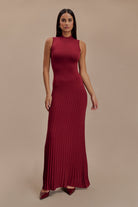 Mavis High Neck Pleated Maxi Dress - Mahogany