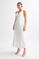 The MEGHAN Meghan Satin Maxi Dress epitomises timeless elegance and sophistication. Featuring a flattering V neckline and a discreet centre back invisible zip, this dress exudes understated charm and grace. Its maxi length adds a touch of allure, perfect for making a statement on any occasion. Enhanced with gathered under-bust detail, it ensures a flattering fit that complements your figure flawlessly. Lined for comfort, the Meghan dress is the epitome of effortless chic, allowing you to exude confidence and style with every step.