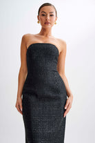 Presenting the MONET Tweed Strapless Midi Dress, a timeless piece that exudes sophistication and elegance. With its strapless design, this dress showcases your shoulders with graceful allure. Fitted at the waist, it accentuates your figure beautifully, while the straight skirt shape offers a classic silhouette. Complete with a centre back zipper for easy wear and a midi length for a touch of refinement, this dress is crafted from tweed fabrication, adding texture and depth to your ensemble. Lined for comfort and coverage, the Monet Tweed Strapless Midi Dress is perfect for any special occasion, from cocktail parties to formal events, where you want to make a statement with timeless style.
