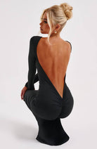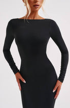 The Stella Boat Neck Backless Maxi Dress exudes a laid-back glamour, combining a stylish boat neckline with an eye-catching backless design. Perfect for formal events or sophisticated evenings, this dress successfully merges timeless beauty with daring allure.