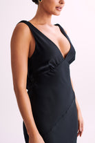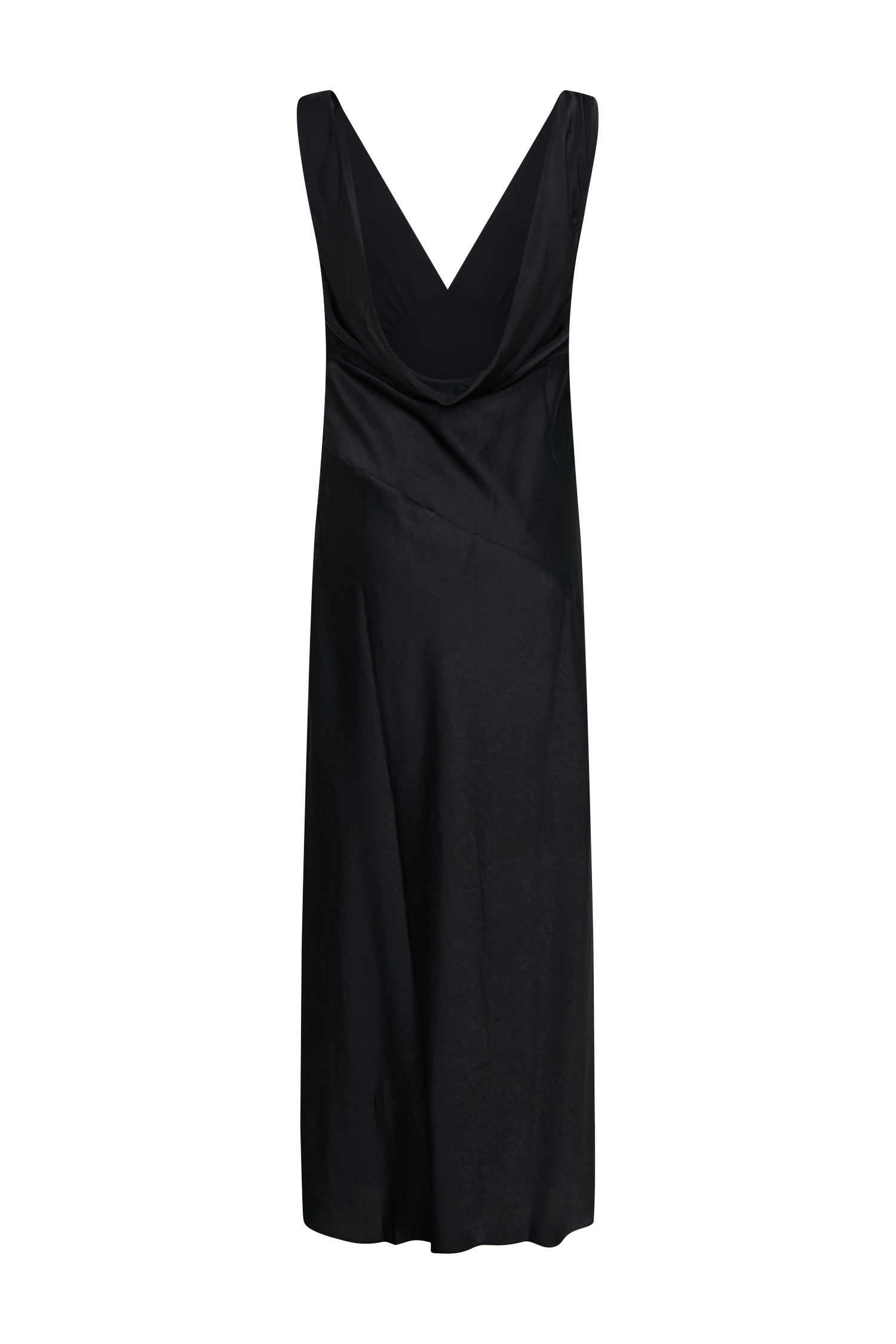 Nadia Maxi Satin Dress With Back Cowl - Black