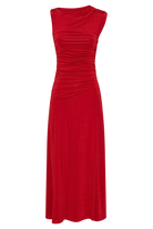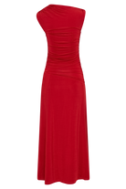 Embrace elegance with the NAVANNA Asymmetric Slinky Midi Dress. This stunning piece showcases a modern asymmetrical neckline and a sleeveless design that exudes sophistication. The rushing waist detail flatters your figure, while the asymmetrical lower waist seam adds a unique touch. With skirt godets that enhance movement, the dress features a flowing midi length and a flared skirt hem shape for a romantic silhouette. Fully lined for added comfort, this dress is the perfect choice for any occasion, ensuring you turn heads wherever you go.