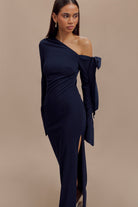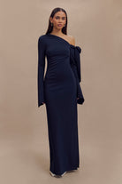 Nicola One Shoulder Crepe Maxi Dress - Dark Navy