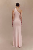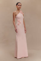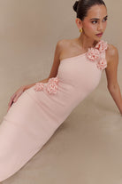 Paloma One Shoulder Knit Maxi Dress With Flowers - Baby Pink