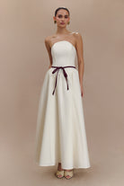 Penny Strapless Contrast Midi Dress - Ivory & Burgundy