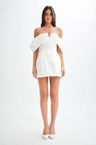 The PORTIA Off Shoulder Satin Corset Dress is a stunning blend of elegance and modern style. Featuring off-the-shoulder sleeve panels that can be removed for versatility, this dress offers a chic and sophisticated look. The fitted bodice and structured skirt shape create a flattering silhouette, while the centre-back zip ensures a seamless fit. With its mini length and fully lined design, the Portia dress is perfect for making a statement at any special occasion.