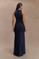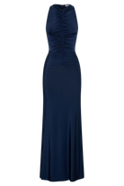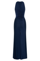 Priya Slinky Ruched Halter Maxi Dress - Navy