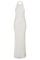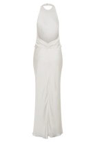 Step into sophistication with the RINNA Satin Halter Maxi Dress, a stunning blend of elegance and modern design. The halter neckline elegantly frames the shoulders, while the open back adds a touch of allure. A side zip ensures a seamless fit, complemented by a button closure at the back neck for added detail. The back gathering and sash panel detail create a flattering silhouette that flows beautifully into the flared hem shape. Crafted with a fully lined interior for comfort, this maxi dress is perfect for special occasions, ensuring you make a lasting impression wherever you go.
