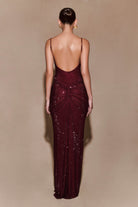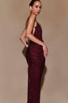 Roisin Diamante Satin Maxi Dress - Mahogany