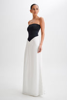 Ruby Strapless Slinky Maxi Dress - Black/White