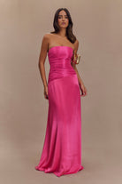 Serena Strapless Taffeta Maxi Dress - Crimson Pink