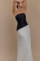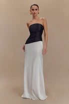 Serena Strapless Taffeta Maxi Dress - White/Black