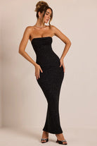 This stunning off-shoulder maxi dress combines timeless elegance with a touch of sparkle. Made from soft, luxurious velour, it gently drapes along the body for a flattering silhouette. The off-shoulder neckline adds a subtle sensuality, while the sparkly finish catches the light with every movement. Its full-length design creates a graceful flow, making it ideal for formal events, elegant dinners, or any special occasion where you want to stand out.