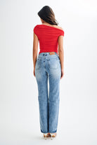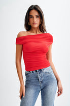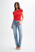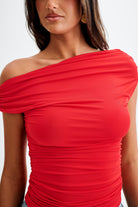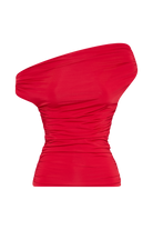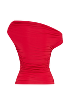 ALAYNA is an asymmetrical top with a straight-cut neckline and strategic ruching. Sewn from a custom blend of elastane and recycled nylon, its stretchy fabrication offers a fairly bodycon fit that highlights your curves. The ruching around the waist and arms further shapes and elongates the body, creating a universally flattering silhouette. Fresh and unique, this seasonal must-have can be worn as a solo feature or layered with a textured blazer.