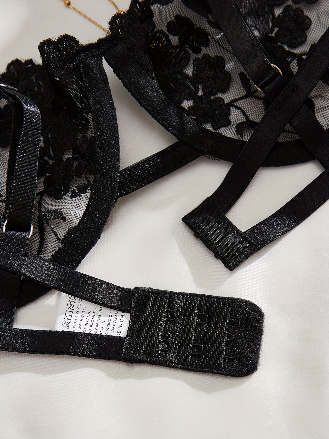 Aeloria - Flower Embroidered Tie-Up Lingerie Set