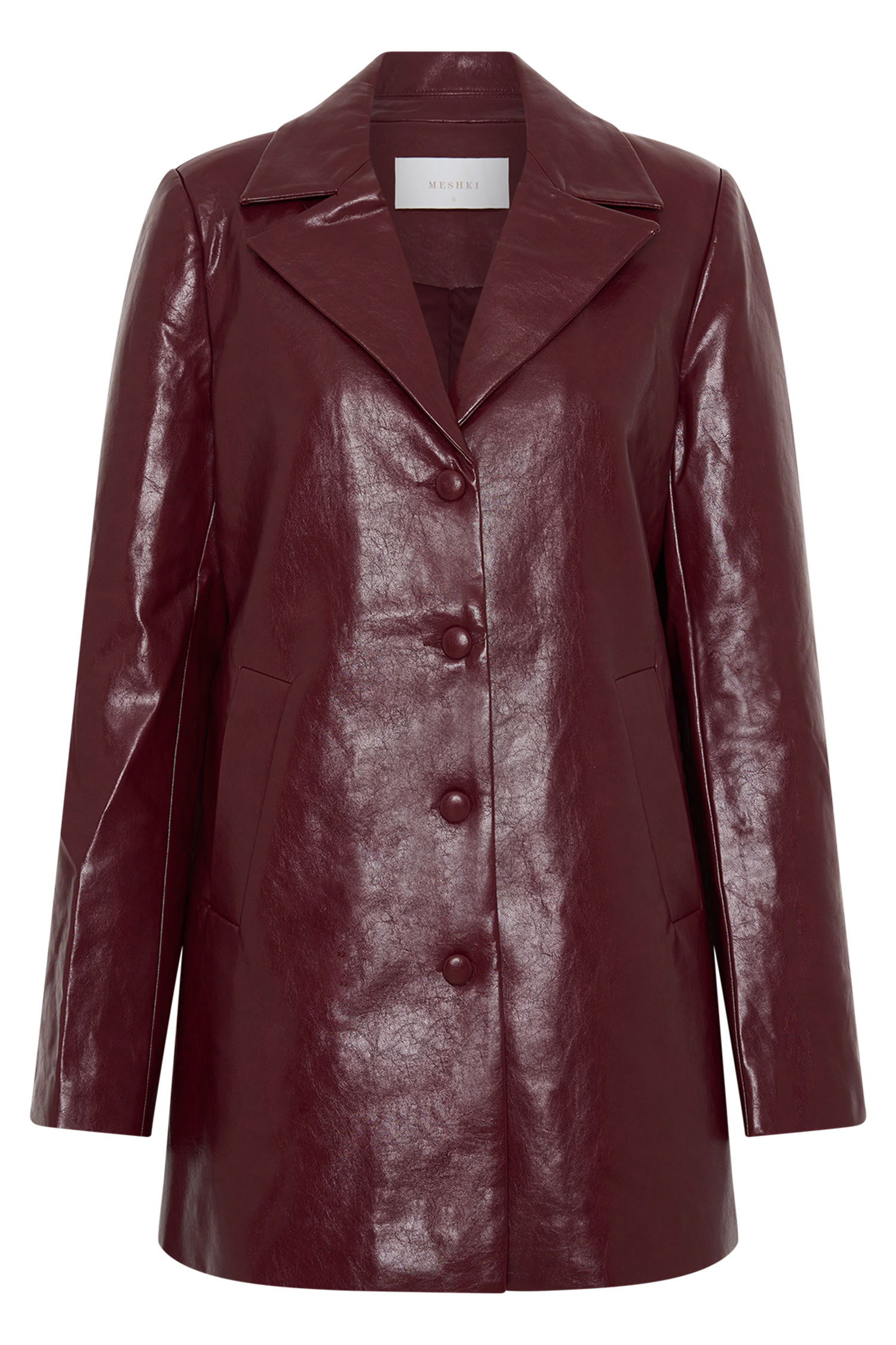 Make a commanding entrance in the DEBORAH Faux Leather Coat, a bold outerwear statement with sleek sophistication. Designed with a peaked lapel collared neckline and structured shoulder pads, this coat exudes confidence and edge. The glossy patent PU leather adds a modern touch, while the centre front button closure and full lining ensure both style and comfort. Mid-length for versatile layering, this coat is your go-to for elevated outerwear with attitude.