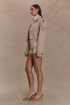 The FRANK Cropped Collared Jacket is your go-to layer for structured style with a relaxed twist. Featuring a classic collar, zip front closure, and raglan sleeves, this cropped silhouette is designed for easy movement and modern edge. Adjustable waist and hem belts allow for a custom fit, while full lining ensures comfort and polish. Perfect for transitional dressing, this jacket brings a fresh, functional feel to everyday outfitting.