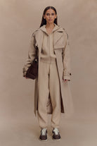 Command attention in the LOIS Twill Trench Coat, a modern take on a forever classic. Featuring a double notched collar neckline and double-breasted button closure, this trench is defined by its tailored yet relaxed silhouette. Details like shoulder epaulettes, sleeve straps with loops, and a pleated back vent nod to traditional design, while the waist tie and belt loops allow for custom cinching. Finished with a centre back split for ease of movement, this coat is your go-to for polished outerwear with enduring appeal.
