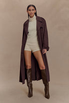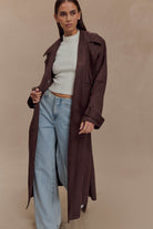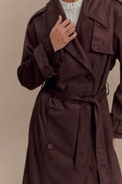 Wrap yourself in the MARC Faux Suede Coat, a modern take on classic outerwear. Featuring a double notched collared neckline and double-breasted button closure, this coat is finished with traditional details like shoulder epaulettes, sleeve straps with loops, and a single back vent for ease of movement. Crafted in supple faux suede with a relaxed fit and long midi length, this coat brings elevated sophistication to every layer.