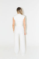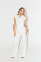 Effortless sophistication meets modern style with the Adeline sleeveless jumpsuit. Designed for the woman who commands attention, this crisp white jumpsuit features a sleek sleeveless silhouette and a tailored, figure-hugging fit. The flared leg adds a touch of drama, creating an elongated, elegant look. Whether you're heading to the office or out for a girls' night, Adeline is your go-to for power dressing with a chic twist.