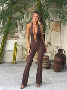 Attract attention while staying effortlessly comfortable in the Sophie Lace Jumpsuit. Designed to shape and flatter, this one-piece wonder features a gorgeous lace overlay with a sultry lace-up back and halter neckline for the perfect blend of elegance and allure.