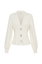 The BEVERLY Knit Cinched Cardigan is a perfect blend of elegance and contemporary style. With its V neckline and functional centre front buttons, this cardigan is both practical and chic. The front and back pleat details, along with the blouson sleeves and shell buttons, add a touch of sophistication. The cinched waist flatters your figure, while the unlined knit ensures comfort. For a complete and stylish ensemble, pair it with the Beverly Knit Pleated Mini Skirt and step out with confidence and grace.