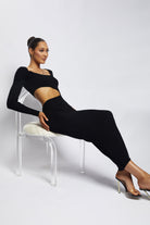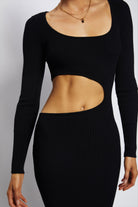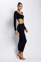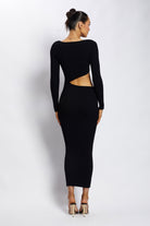 Gaia Cut Out Asymmetric Knitted Midi Dress - Black