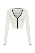 The JOLENE Contrast Button Up Knit Cardigan is the perfect blend of comfort and style. This long sleeve knit top features a front button closure and ribbed hem detail, offering a classic yet polished look. The contrast piping adds a touch of sophistication, while the soft knit feel ensures all-day comfort. Unlined for a lightweight finish, the Jolene cardigan is an effortless addition to any wardrobe, ideal for layering or wearing on its own. Pair with the Jolene Contrast Pleated Knit Mini Skirt to complete the look.